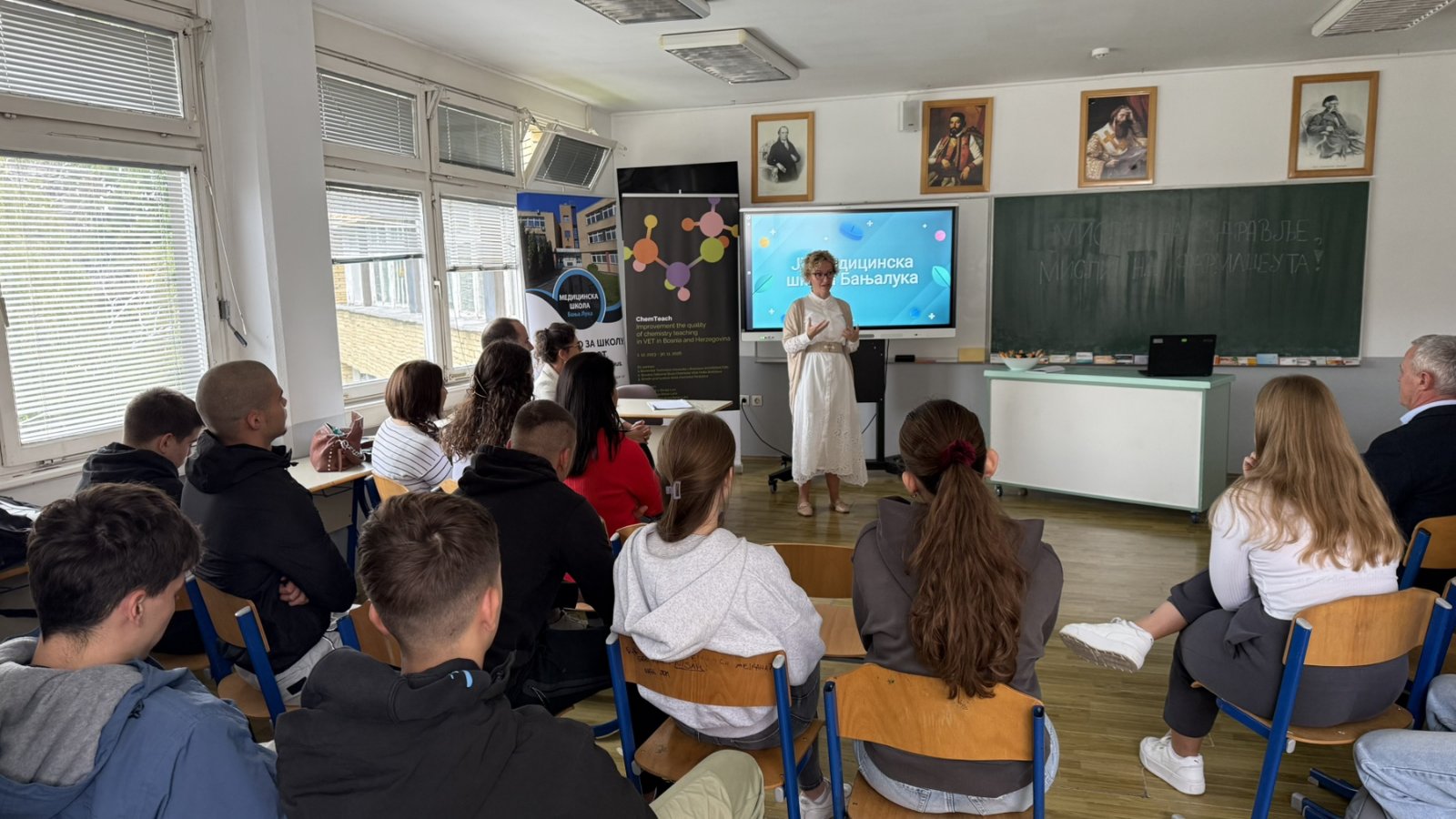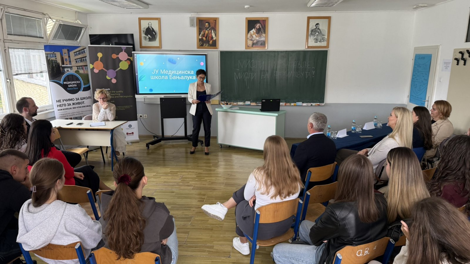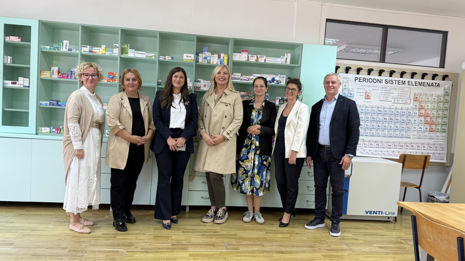 Дана 30.9.2025. наша школа је организовала обиљежавање Свјетског дана фармацеута,који се обиљежава сваке године 25.9. Као госте смо имали предсједницу Фармацеутског друштва мр фарм. Наташу Милановић,као и замјеницу министра здравља и социјалне заштите мр фарм. Весну Випотник и мр фарм. Јелену Медар Петровић. Ученици су кроз презентацију приказали рад фармацеутског смјера и кроз различите приказе случаја о рационалној употреби антибиотика,о савјетодавној улози фармацеута у апотеци и приказ како фармацеут (не)треба да се понаша у апотеци. У склопу догађаја смо отворили и огледну школску апотеку,која је оспособљена за извођење наставе из Фармацеутске технологије-изборни предмет и Фармакологије.