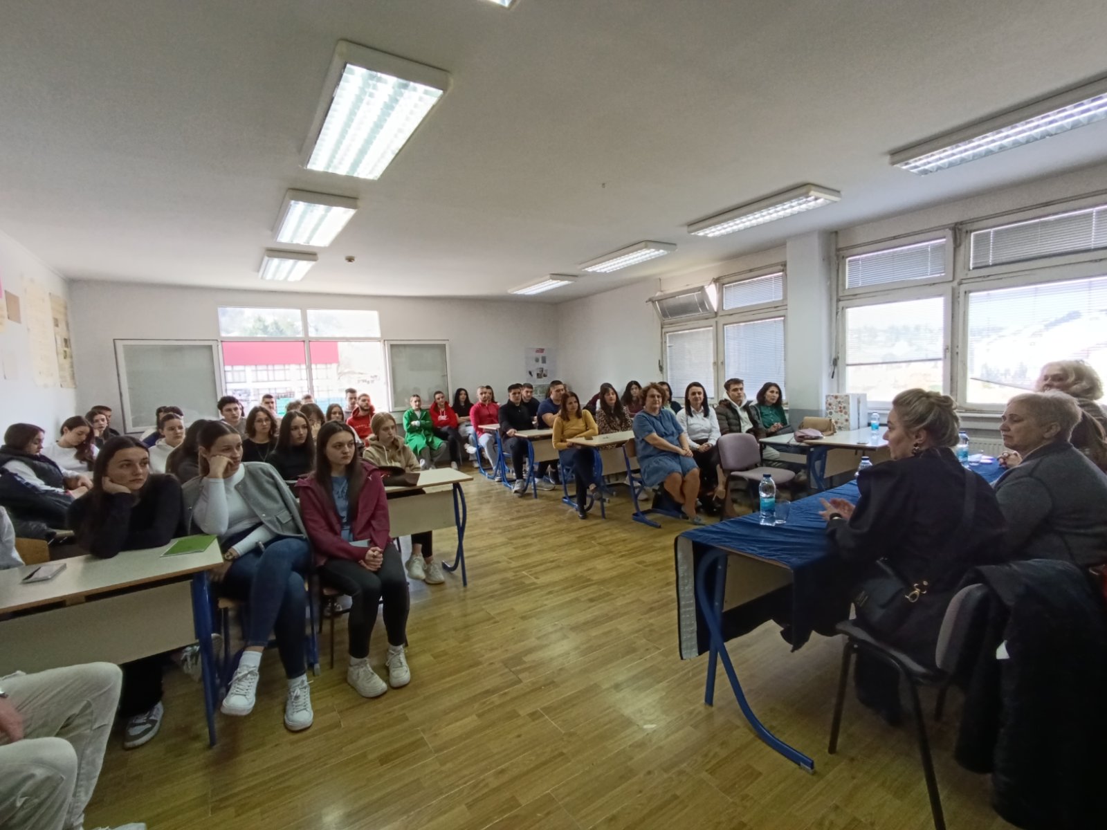 Данас је у нашој школи обиљежен Свјетски дан особа с Дауновим синдромом, који су организовале др Далиборка Савичић и др Биљана Марјанац. Гости предавања су биле Жељка Перишић-Нинковић, директорица Сервис центра "Дајте нам шансу- Звјездице", корисник Центра Рада Живковић са кћерком Василијом која има Даунов синдром и спољни сарадник Центра магистар здравствене његе Андреа Доленчук. Наше гошће су говориле о потешкоћама са којима се боре родитељи дјеце с Дауновим синдромом. Затим су одговарале на питања ученика који су показали велико интересовање за ову тему. Предавању су присуствовали педагог Слађана Босанчић, координатор Неда Шевер, проф. Сања Ковачевић, проф. Нада Ђаковић, проф. Вања Комљеновић и ученици II8, III6 и IV2 разреда.